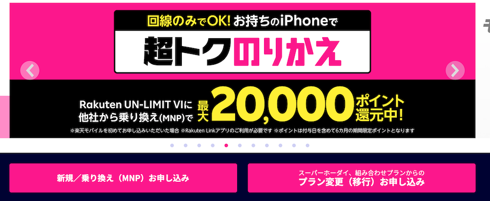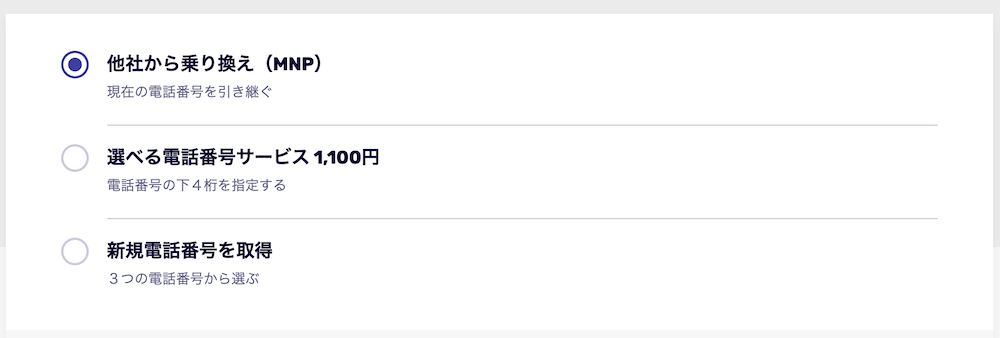 新規契約ではなく、他社から楽天モバイルに乗り換える場合はMNP予約番号(携帯電話ナンバーポータビリティ予約番号)が必要となります。