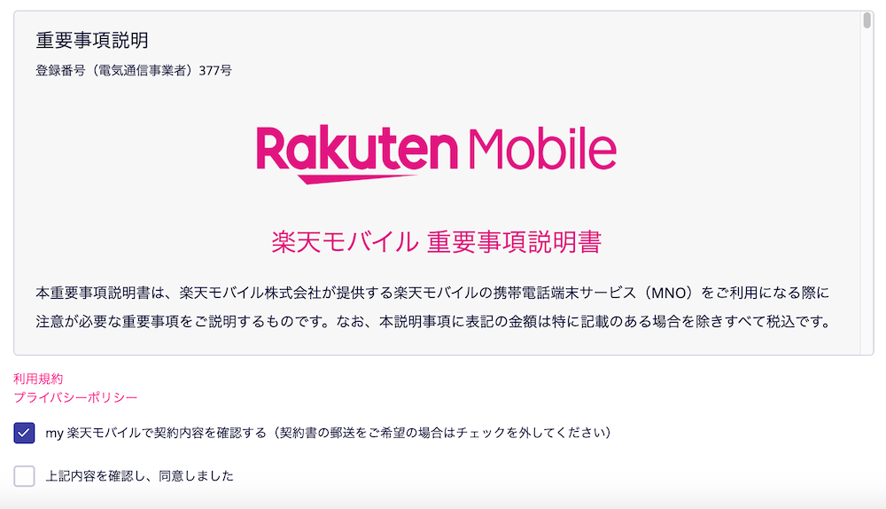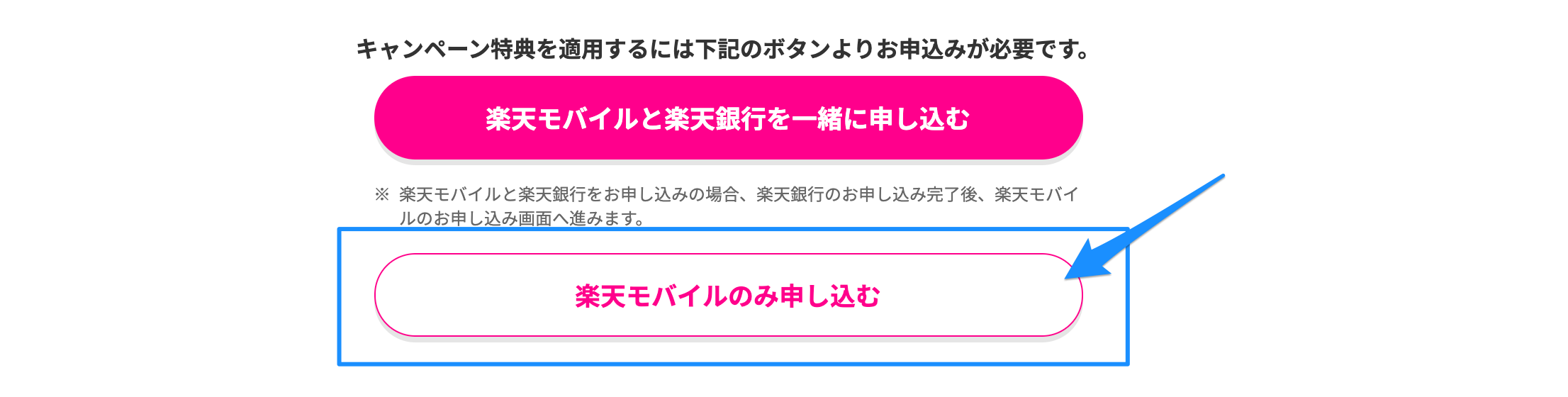 「楽天モバイルのみ申し込む」をクリックしてください。