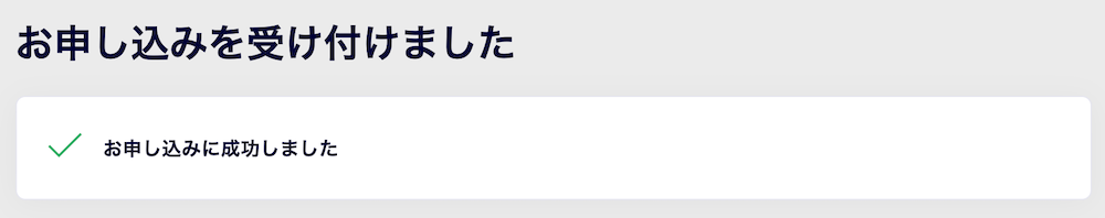 「お申し込みに成功しました」と表示されれば申し込みは完了です。