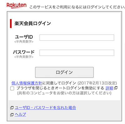 楽天会員のユーザーIDとパスワードを入力してログインしてください。