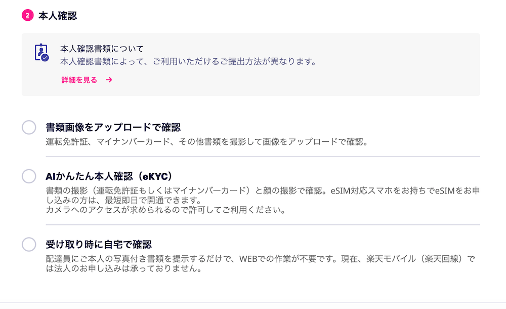 すでに楽天会員なら問題ありませんが、本人確認書類の情報と楽天会員の情報が一致している必要があるため注意してください。